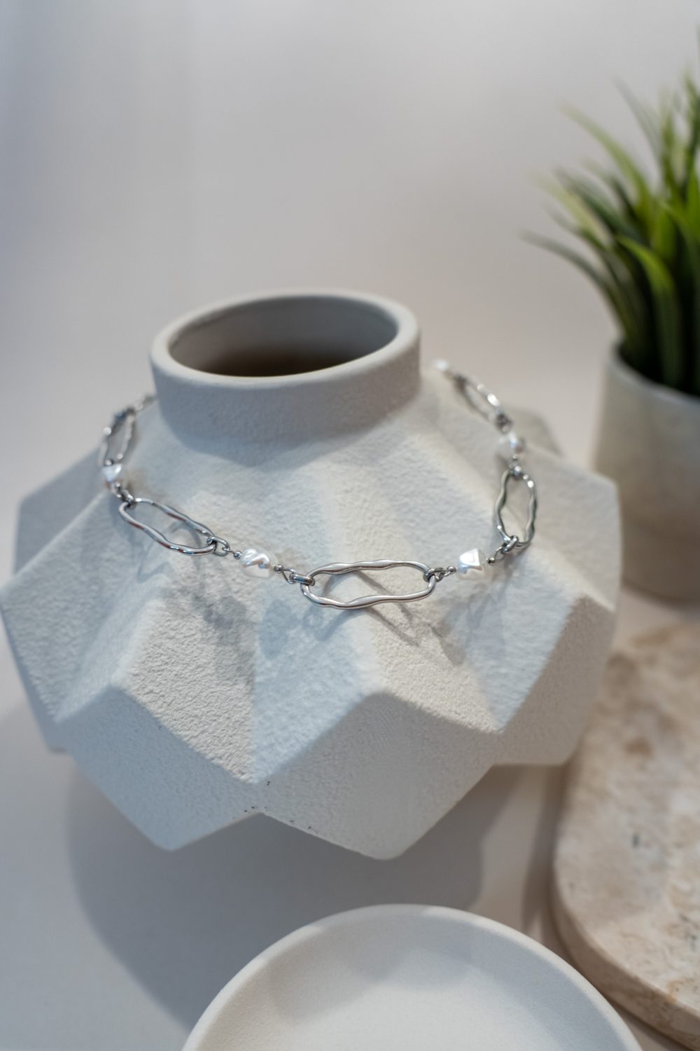 Κολιέ Αλυσίδα με πέρλα Lysara – Ασημί