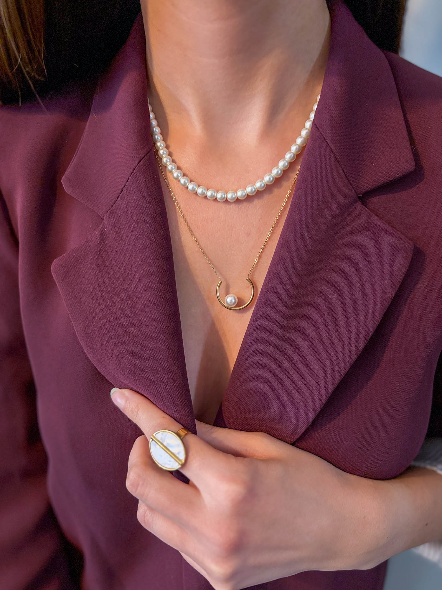 Το δαχτυλίδι Dualis ξεχωρίζει για τον minimal σχεδιασμό του με οβάλ σχήμα και λευκό σμάλτο, χωρισμένο κομψά στο κέντρο με χρυσή μεταλλική γραμμή. Ένα σύγχρονο και ισορροπημένο σχέδιο που συνδυάζει την απλότητα με τη διαχρονική κομψότητα.