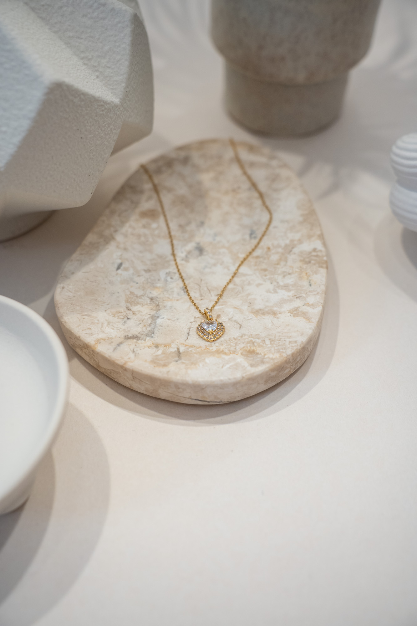 Κολιέ με καρδιά διακοσμημένη με λαμπερές πέτρες σε λεπτή αλυσίδα. Διατίθεται σε χρυσό και ασημί χρώμα. Κατασκευασμένο από ανοξείδωτο ατσάλι, δεν μαυρίζει και διατηρεί τη λάμψη του στο χρόνο.