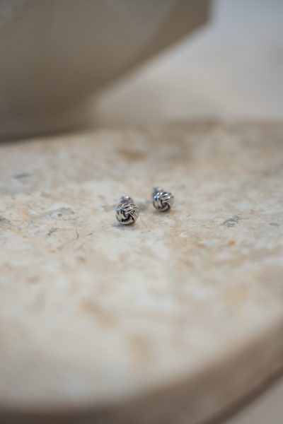 Μικρά και κομψά σκουλαρίκια κόμπος από ανοξείδωτο ατσάλι με χρυσό ή ασημί φινίρισμα. Ιδανικά για κάθε μέρα, με καρφωτό κούμπωμα και διακριτική λάμψη.