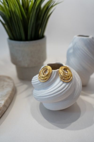 Τα σκουλαρίκια Isadora ξεχωρίζουν με το πολύπλοκο, layered σχέδιό τους που θυμίζει διαδοχικά δαχτυλίδια. Το ελλειπτικό σχήμα και η επιφάνεια τους προσδίδουν δυναμισμό, βάθος και κομψότητα σε κάθε εμφάνιση, δημιουργώντας ένα κόσμημα με sculptural χαρακτήρα.