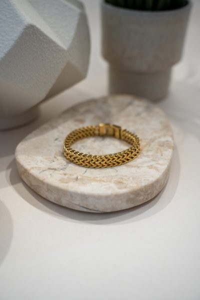 Το βραχιόλι Caelira μαγνητίζει με την αλυσίδα του σε fox tail ύφανση, που δημιουργεί μια πλούσια, πλεκτή υφή με διακριτική κίνηση. Η πυκνή δομή του και το γεμάτο φινίρισμα ενισχύουν την αίσθηση πολυτέλειας και σταθερότητας, προσδίδοντας σοφιστικέ χαρακτήρα σε κάθε στυλ.