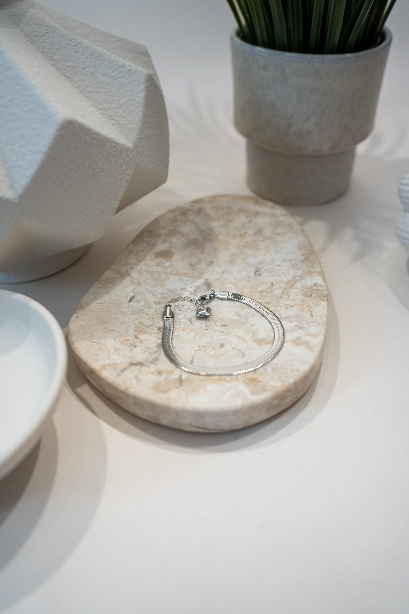 Μίνιμαλ βραχιόλι με flat snake αλυσίδα για καθημερινή λάμψη και διαχρονικό στυλ. Διατίθεται σε χρυσό και ασημί χρώμα. Κατασκευασμένο από ανοξείδωτο ατσάλι, δεν μαυρίζει και διατηρεί τη λάμψη του στο χρόνο