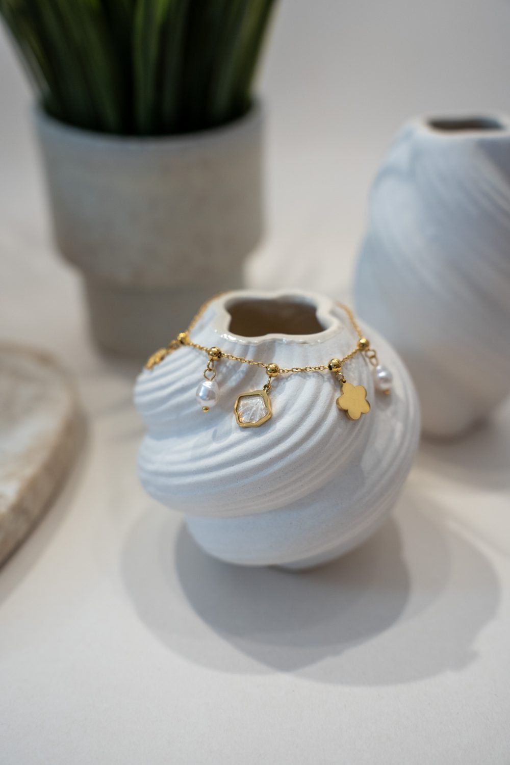 Βραχιόλι κοχύλι & πέρλα Thaliera – Χρυσό